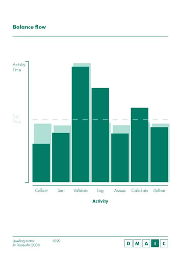 The levelling matrix is used to compare the time for every activity in the process and balance the flow across them.